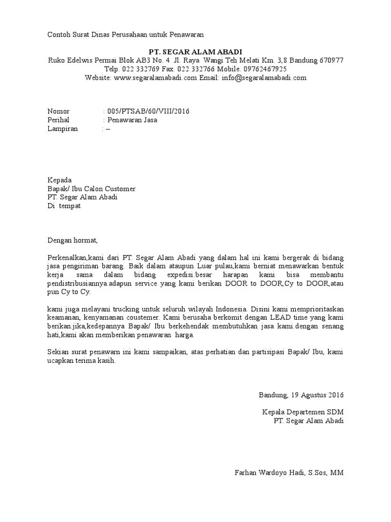 09 Contoh Surat Penawaran 2019 from 123dok.com Tujuan dari dibuatnya surat penawaran yaitu untuk dapat membuka peluang kerjasama antara pihak perusahaan dengan klien. Penjelasan lengkap seputar contoh surat penawaran yang baik dan benar. Didalam dunia bisnis surat penawaran merupakan salah satu surat yang bertujuan untuk menawarkan barang / jasa dari perusahaan yang umumnya bertindak sebagai. Dalam hal perdagangan segala penawaran suatu barang, kerjasama, harga mapun jasa lebih baik menggunakan surat penawaran. Sesuai dengan pengertian dari surat penawaran yang memiliki fungsi utama untuk menawarkan produk berupa barang atau jasa dan terkadang keduanya agar terjalin kerjasama antara dua belah pihak. Dari beberapa contoh surat penawaran jasa di bawah ini, dapat disimpulkan bahwa surat penawaran produk barang dan jasa sebenarnya tidak jauh berbeda. 18 maret 2021 oleh rolif refo. Anda sedang membuka postingan contoh surat penawaran jasa pengiriman barang yang berada pada kategori contoh surat dengan tag postingan berikut contoh.